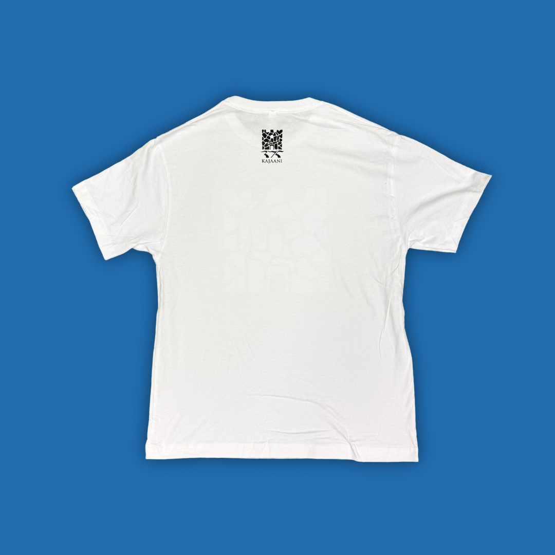 Edessä värikäs Kajaanin 375 -juhlavuoden Rocks-painatus ja niskassa tyylikäs yksivärinen juhlavuoden logopainatus.