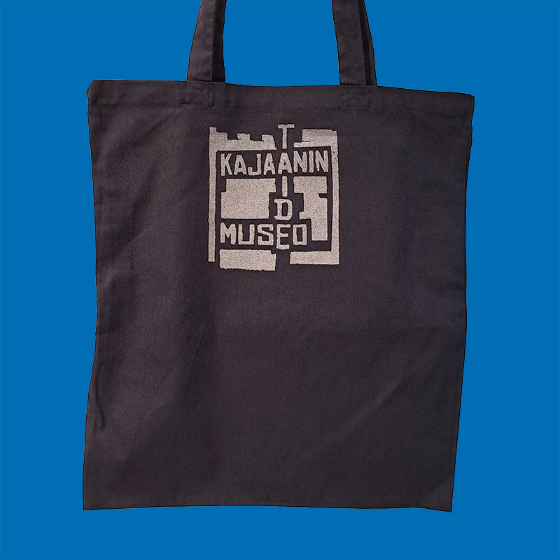 Kajaanin taidemuseon kassi harmaalla logolla määrä